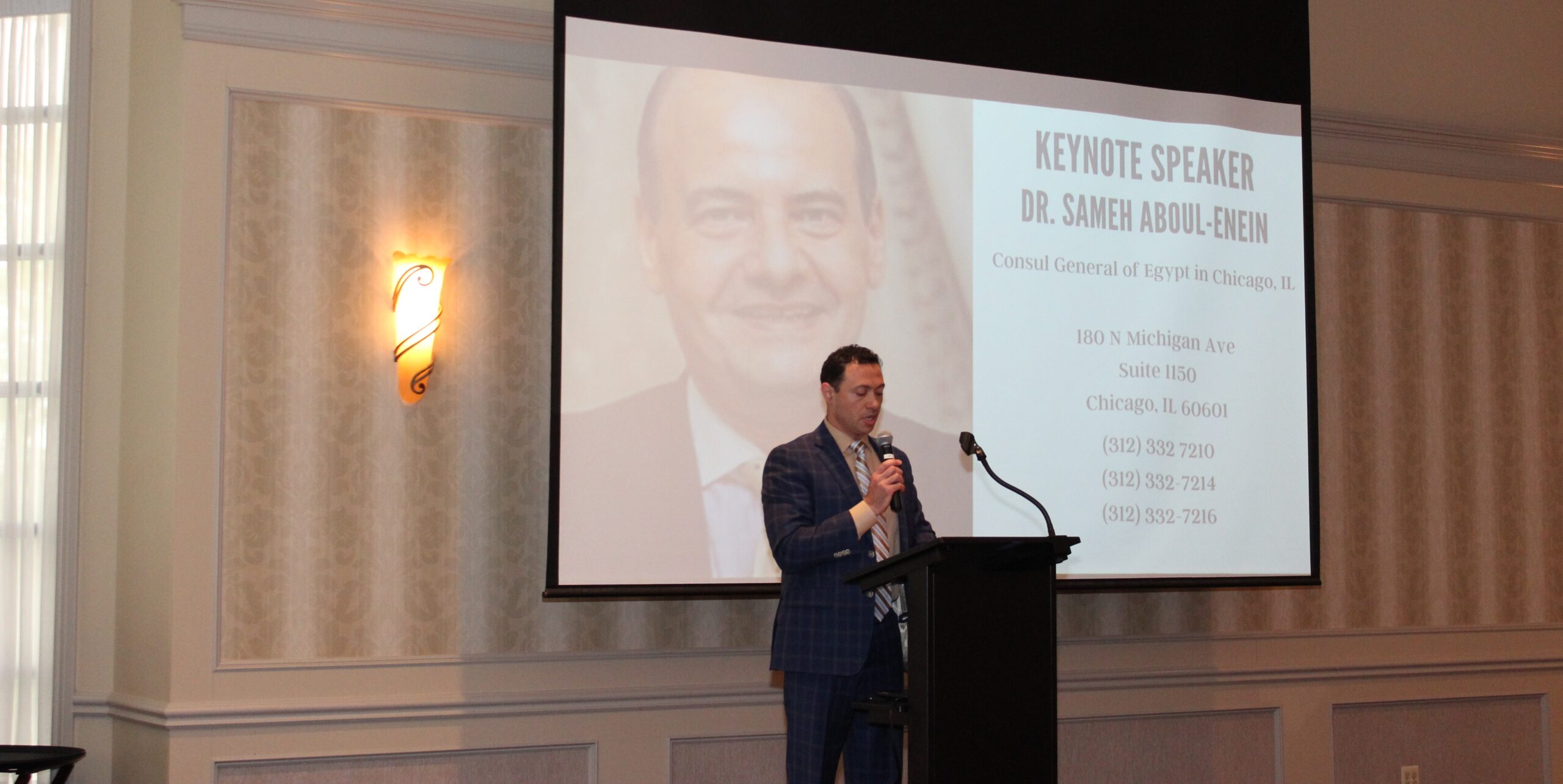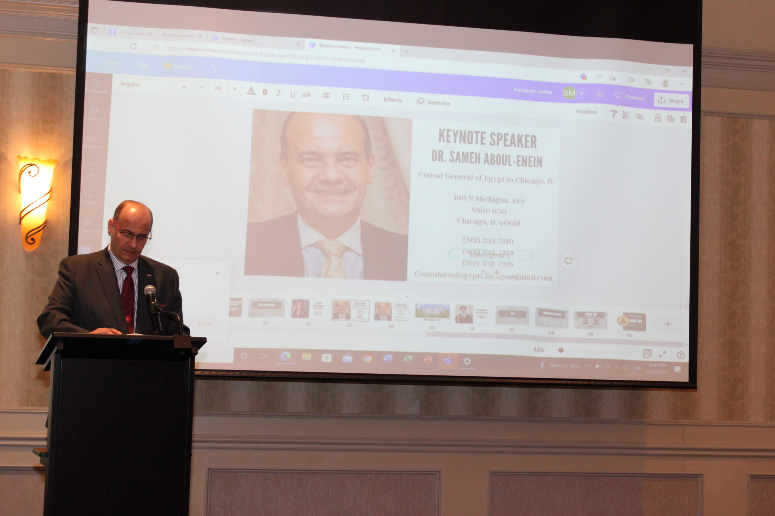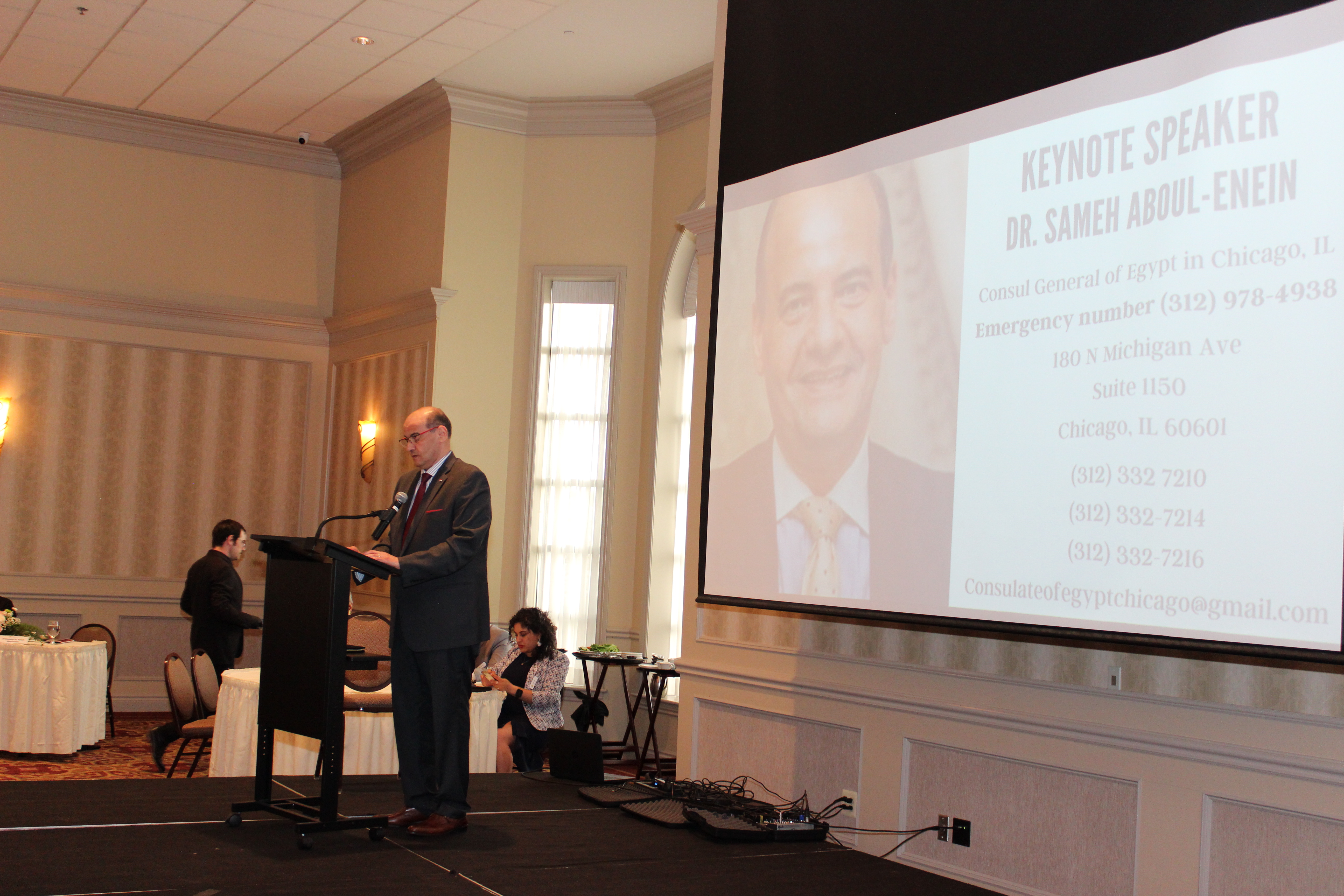The Diocese had the pleasure of welcoming Dr. Sameh Aboul-Enein, Consul General of Egypt in Chicago, IL as our keynote speaker for the banquet. During his keynote, Dr, Aboul-Enein provided some history behind Egypt’s Ministry of Foreign Affairs as well as some insights into future innovative projects which plan to streamline Egypt’s diplomatic affairs and provide more accessibility to Egyptian citizens living abroad. Furthermore, his excellence has generously shared with the congregation his contact information (below) to extend his service for anyone in the community in need.